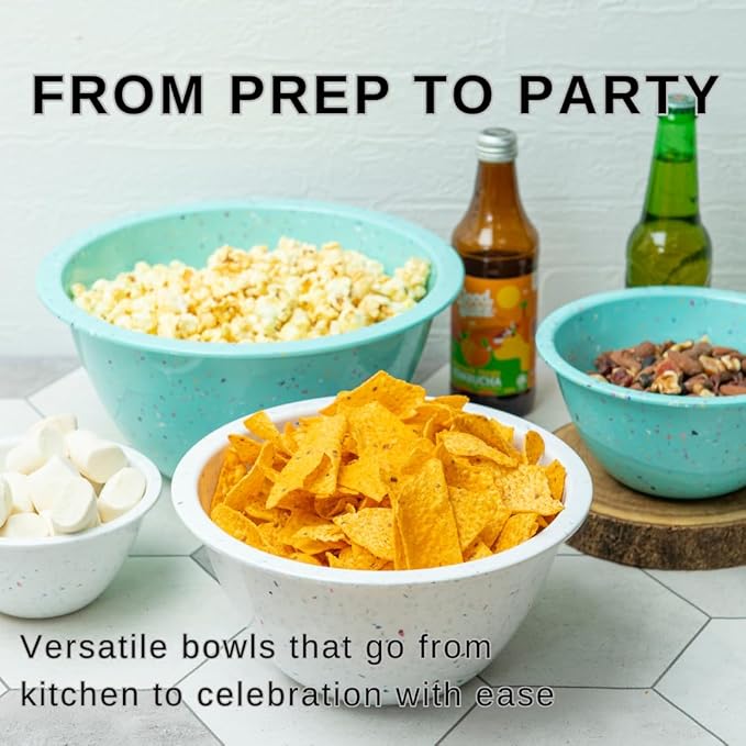 - Chip-Resistant & Everyday Ready: Engineered for heavy use—sturdy melamine resists cracks, stains, and odors. Use for cooking, baking, parties, or as fruit bowls!