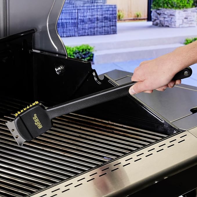 - Durable Nylon Bristles Safe for Cool Grills: The 18” Deluxe Grill Brush is equipped with tough, long-lasting nylon bristles that are safe to use on cool grill surfaces. Unlike traditional stainless steel alternatives, these bristles are effective without risking damage to your grill’s finish.