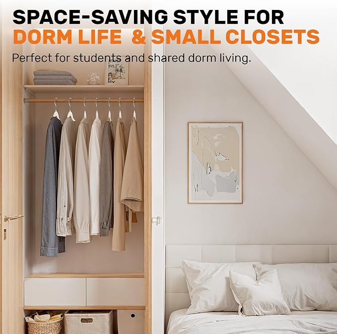 - 🎨 Elegant, Versatile for All Styles: With a sleek, notch-free design, these hangers bring a refined look to any space—from dorm closets to walk-in wardrobes. Ideal for dresses, shirts, blazers, and sweaters, they suit every clothing type and lifestyle.