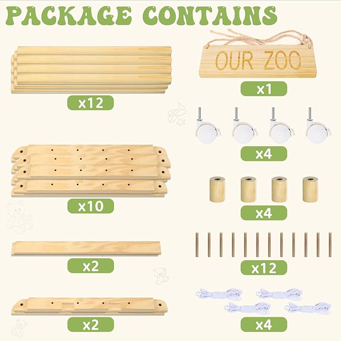 - Unique Design: Our Stuffed Animal Storage Zoo is made of natural pine wood and features a sturdy, durable construction, a reinforced frame for excellent stability, and adjustable elastic cords to securely hold all sizes of stuffed animals, not only increasing storage space, but also making it easy for kids to access the toys