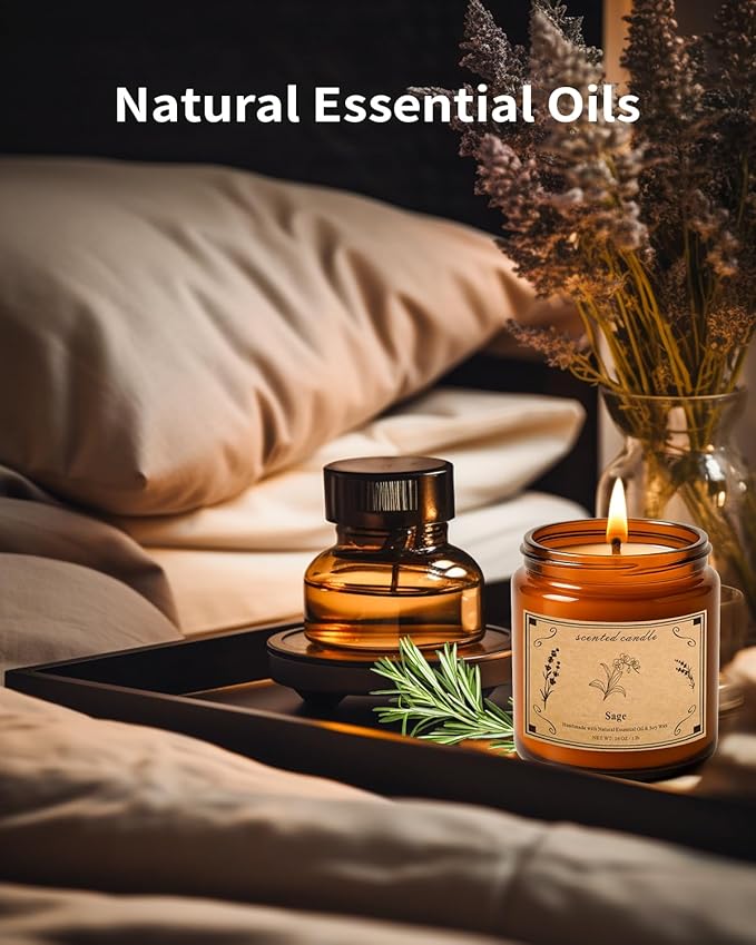 - Soothing Sage Aroma: Experience deep relaxation with our sage aromatherapy candle, carefully infused with high-quality, pure sage essential oils. Ideal for baths, yoga, restful moments, or enhancing your workspace