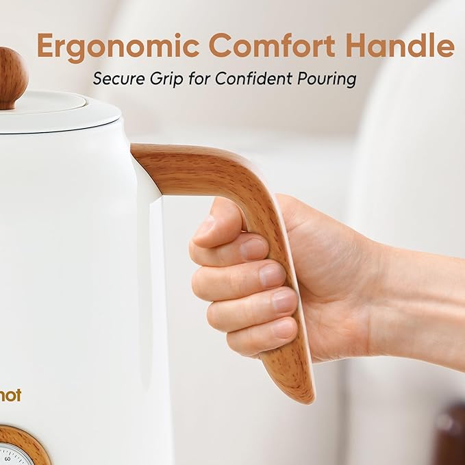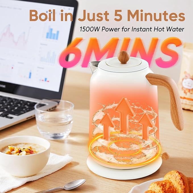 - 【Elegant Retro Design with Easy Handling】 – This tea kettle electric combines vintage charm with modern kettle design, featuring an ergonomic handle, one-touch switch, wide mouth for cleaning, and a 360° cordless base. A stylish water kettle electric that simplifies your routine and enhances every kitchen.