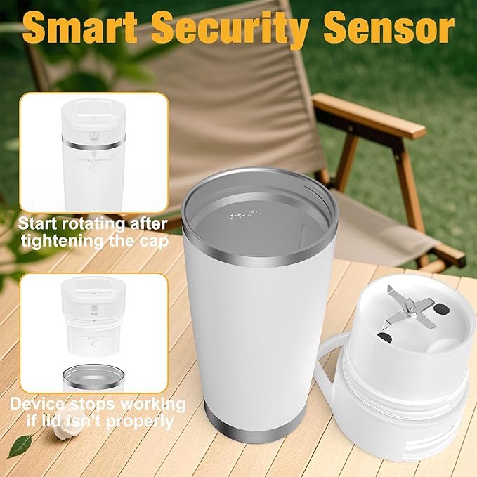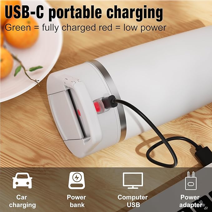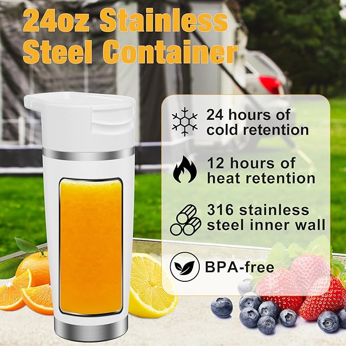 Portable Personal Blender 24oz Vacuum Cup Cordless Blender for 120 Watt Rechargeable Personal Size blender With Stainless Steel Bottle Ideal For-Shakes and Smoothies, BPA Free (White)