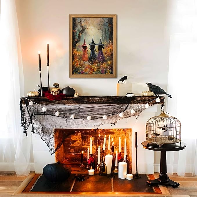 - 【Vintage Witch Halloween Wall Decor】: Celebrate the spooky season with this vintage-style Halloween wall decor. Three mysterious witches make their way through a misty forest, perfect for a nostalgic yet spooky fall vibe.