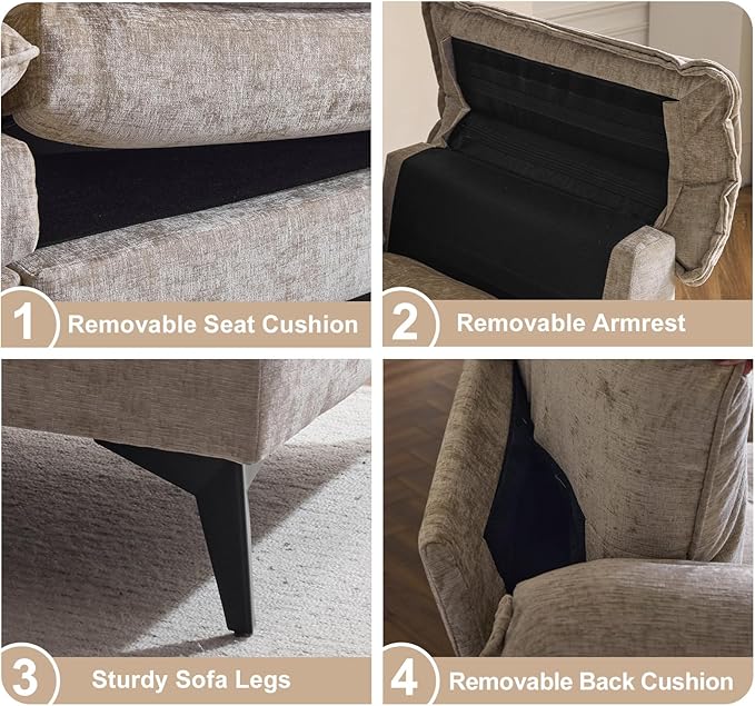 - [Double Layer Cozy Sofa | Ultra Plush Support ] Experience cloud-like comfort with our dual-layer sectional sofa, featuring body-hugging ergonomic support and ultra-plush chenille upholstery. The high-resilience foam base and pressure-relieving top layer offer perfect balance. Your ideal retreat for total relaxation by offering an ultra-soft and luxurious tactile experience.