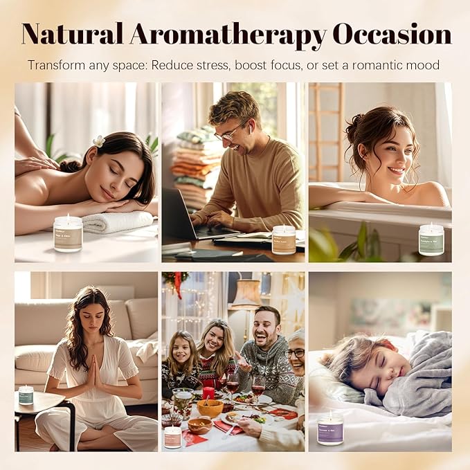 - Long Lasting Burn:Crafted with 100% natural soy wax candles non toxic, these aromatherapy candles offer a cleaner, longer-lasting burn than paraffin alternatives. Our soy candle blend ensures minimal soot and even wax pooling for up to 20 hours per candle. Infused with natural essential oils, they provide exceptional scent throw—ideal for creating a wonderful home fragranc.