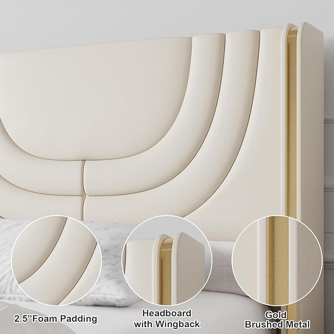 - 【Premium Faux Leather Upholstery】This curved headboard bed frame is wrapped in easy-to-clean faux leather in a creamy white hue that blends perfectly with modern, farmhouse or minimalist bedroom decor