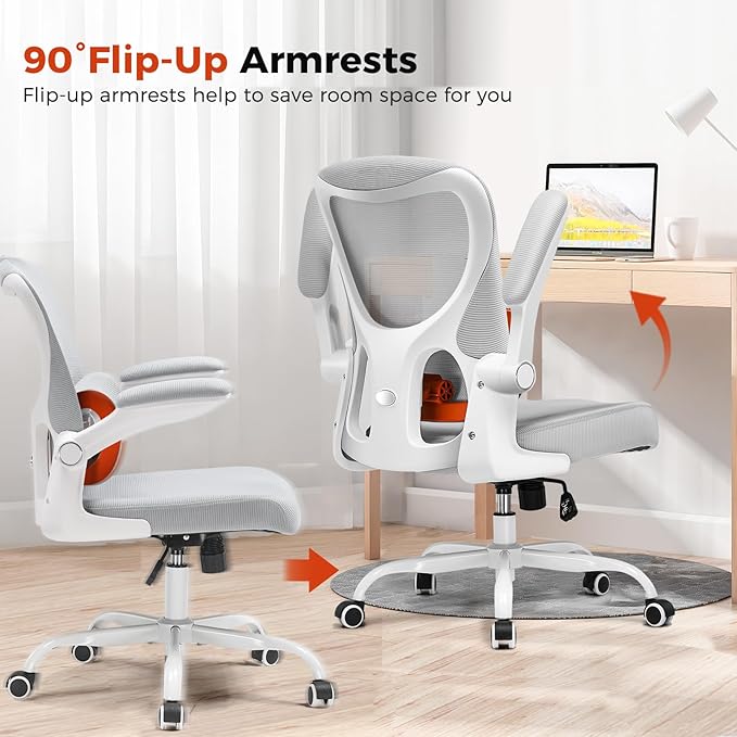 GTRACING Office Chair Ergonomic Desk Chair with 3D Adaptive Lumbar Support, High Back Home Mesh Chair with Flip-Up Arms, Swivel Rolling Computer Seating for Long Desk Work (Gray)