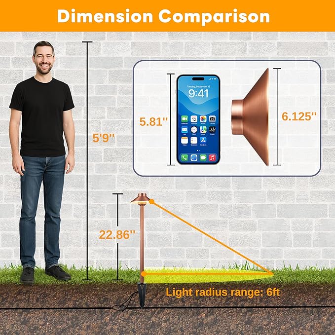 - 𝐈𝐏𝟔𝟓 𝐖𝐚𝐭𝐞𝐫𝐩𝐫𝐨𝐨𝐟: Constructed with waterproof heavy-duty brass, landscaping pathway light feature sealed silicone rings to prevent water entry. These wired low voltage path lights ensure stable and consistent lighting, work flawlessly in any weather
