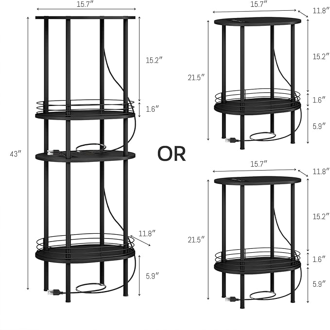 - [FOR SMALL SPACES] Standing at 11.8"D x 15.7"W x 21.5"H, this end table takes up little floor space while serving .This two-tier side tables with top/bottom shelf for extra storage has ample space for books, tablets, remote controls, snacks and drinks