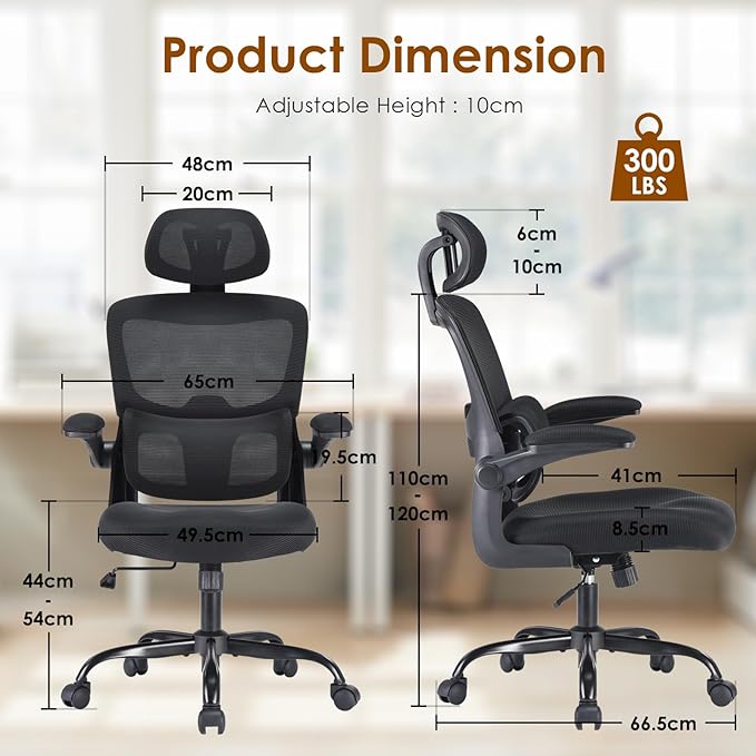 Soohow Ergonomic Office Chair, High Back Desk Chair with Flip-Up Armrest and Adjustable Lumbar Support, Computer Chair for Home and Office
