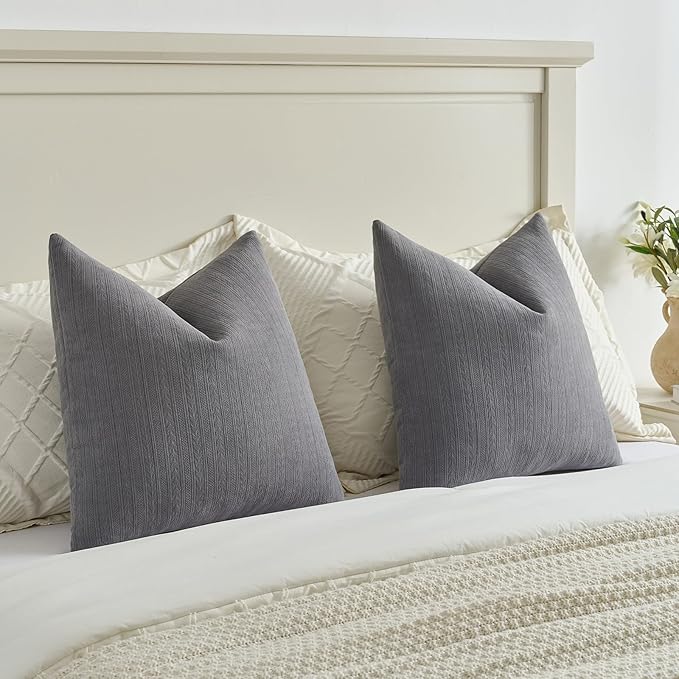 FUTEI Dark Grey Decorative Throw Pillow Covers 18x18 Inch Set of 2,Soft Cozy Wheat Ear Striped Patterns Cushion Cases,Modern Home Decor for Couch Bed Living Room