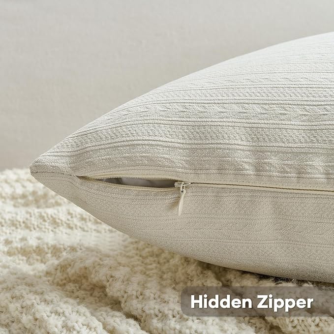 FUTEI Cream White Decorative Throw Pillow Covers 18x18 Inch Set of 2,Soft Cozy Wheat Ear Striped Patterns Cushion Cases,Modern Home Decor for Couch Bed Living Room
