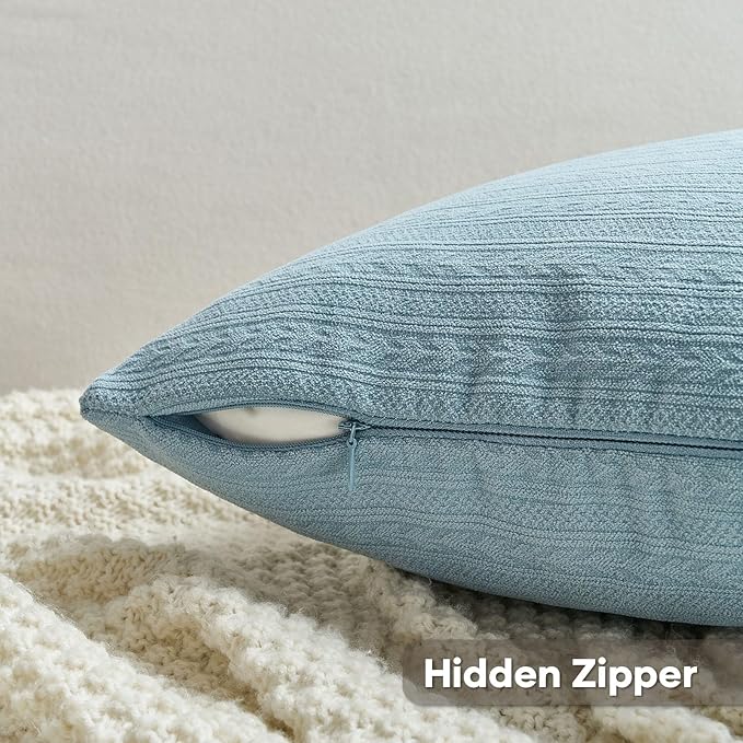 FUTEI Denim Blue Decorative Throw Pillow Covers 22x22 Inch Set of 2,Soft Cozy Wheat Ear Striped Patterns Cushion Cases,Modern Home Decor for Couch Bed Living Room