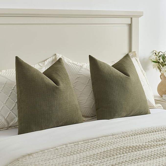 FUTEI Olive Green Decorative Throw Pillow Covers 16x16 Inch Set of 2,Soft Cozy Wheat Ear Striped Patterns Cushion Cases,Modern Home Decor for Couch Bed Living Room
