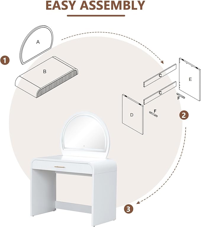 - Curved Edges and Elegant Design: This vanity with beautifully curved edges on the table corners and wavy texture of the drawer, not only enhances its aesthetic appeal but also ensures safety by minimizing sharp edges.