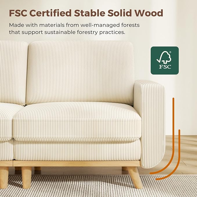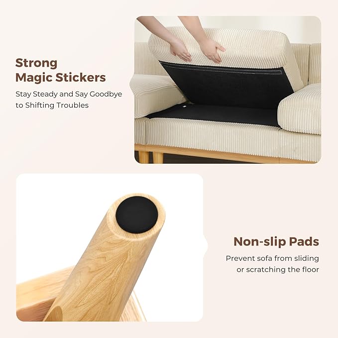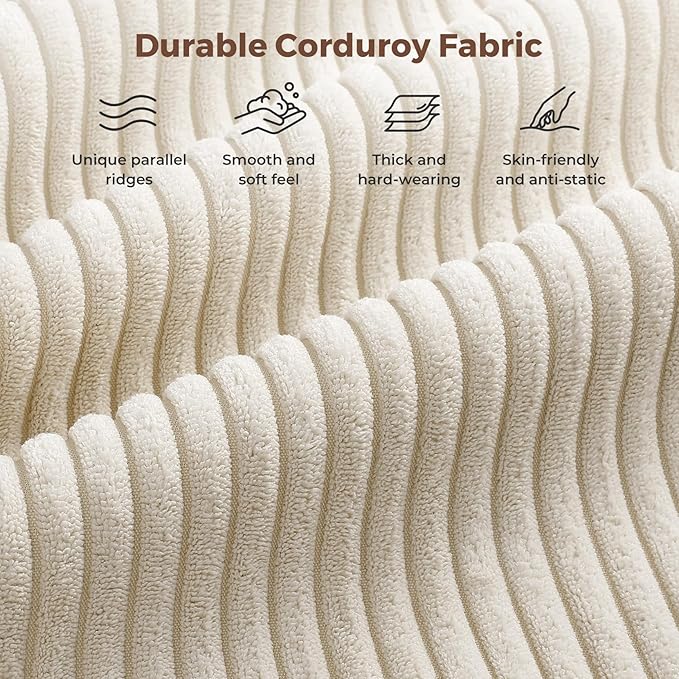- Durable Corduroy Fabric - This corduroy sofa couch has a unique pattern and texture, characterised by parallel ridges that give it a smooth and soft feel. The modern couch has a clear and rounded velvet-like surface, which adds to its luxurious appearance. Additionally, sectional couch is thick and wear-resistant, making it an excellent choice for those who demand comfort and durability