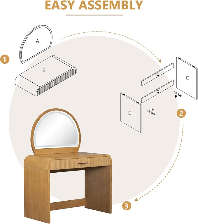 - Curved Edges and Elegant Design: This vanity with beautifully curved edges on the table corners and wavy texture of the drawer, not only enhances its aesthetic appeal but also ensures safety by minimizing sharp edges.