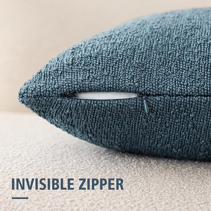 Foindtower Pack of 2, Decorative Textured Boucle Throw Pillow Covers Accent Solid Pillow Cases Soft Cozy Couch Cushion Case for Chair Sofa Bedroom Living Room Home Decor 16x16 Inch Misty Blue