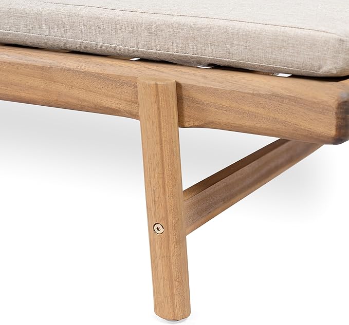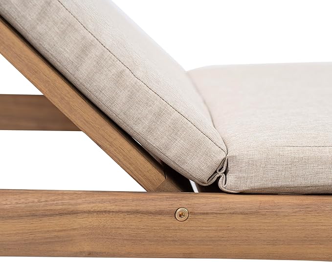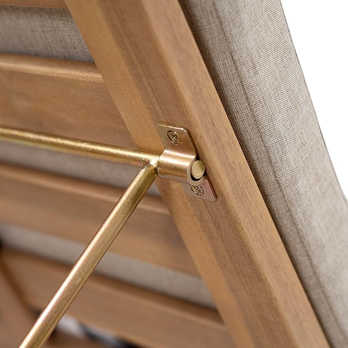 - Patio Sun Lounger with Solid Acacia Wood Frame: Each chaise lounge is crafted from durable acacia wood, known for its high strength, corrosion resistance, and beautiful natural grain. This sturdy material withstands wind, sun, and rain without cracking or warping, ensuring long-lasting performance in outdoor conditions