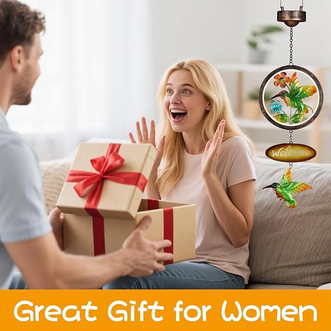 Hummingbird Solar Lantern Outdoor Waterproof Welcome Sign lamp Birthday Gifts for Women Mom Outside Hanging Lights Decor for Garden Yard Patio Backyard Porch