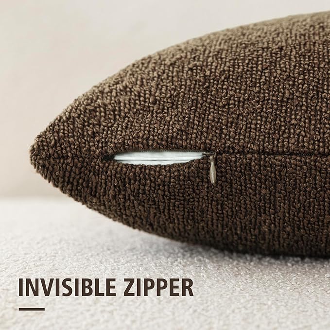 Foindtower Set of 2, Decorative Textured Boucle Throw Pillow Covers Accent Solid Pillow Cases Neutral Soft Couch Cushion Case for Chair Sofa Bedroom Living Room Home Decor 16x16 Inch Chocolate