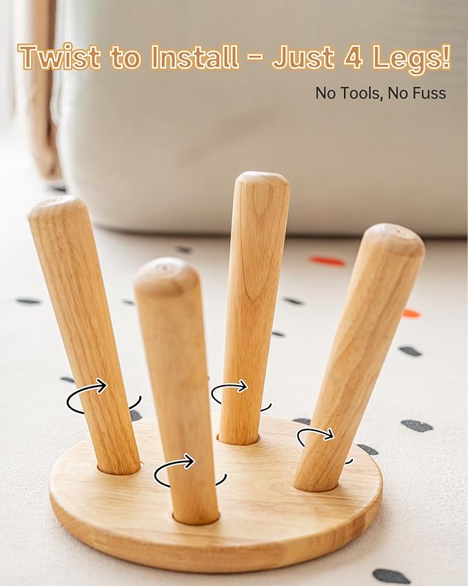 - Easy Assembly & Storage-Friendly: Quick to assemble—just screw in the four legs by hand. When not in use, the legs can be removed and stored flat to save space. Lightweight yet durable, this wooden foot stool is easy to move, clean, and store wherever needed