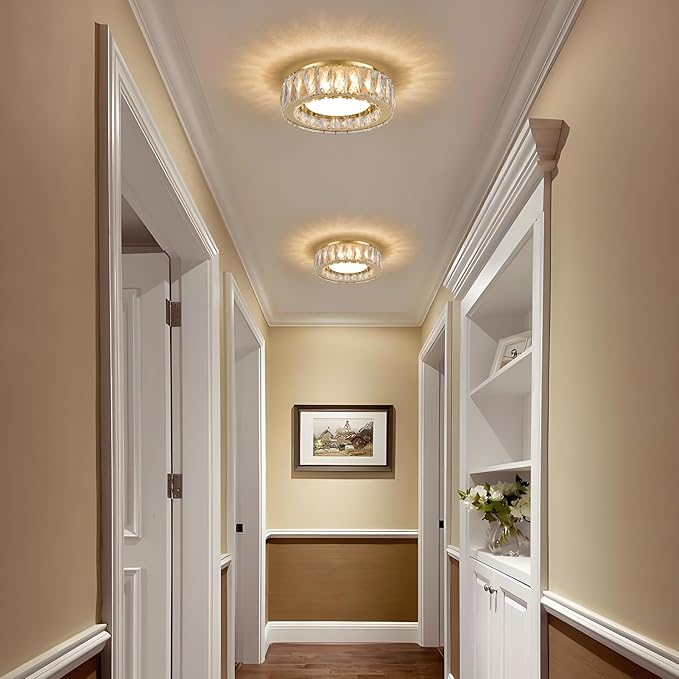 - Dimensions:This luxury crystal semi-flush mount ceiling light measures 11 inches (W) x 3.93 inches (H) and provides ample illumination for spaces up to 50–90 square feet, making it ideal for walk-in closets,bathroom,bedroom,kitchen,entries,hallway corridors,offices,craft rooms,foyers,porches,and aisles