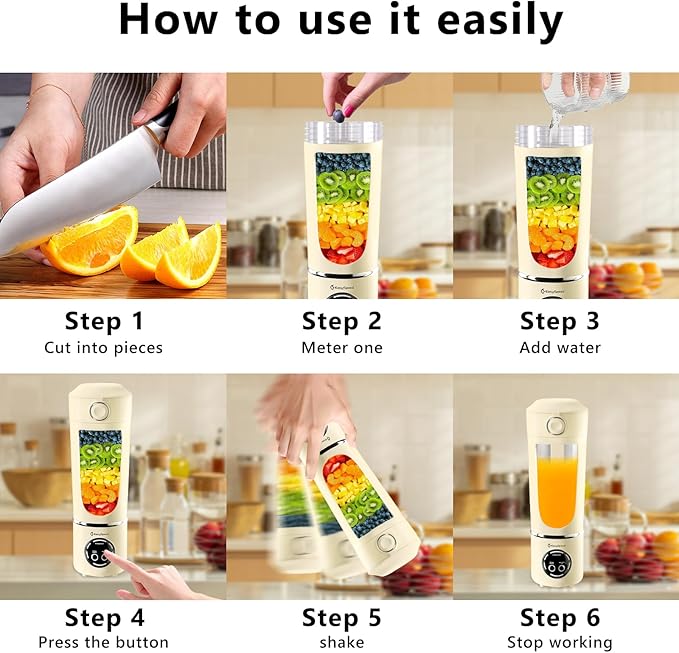 - Easy to Use and Clean: Simple 4-step process from preparation to blending, with clear instructions for optimal juice-to-liquid ratios and mixing techniques;Lid, blender body and cutting base can be separated for easier cleaning.No need to worry about the tedious cleaning after use anymore
