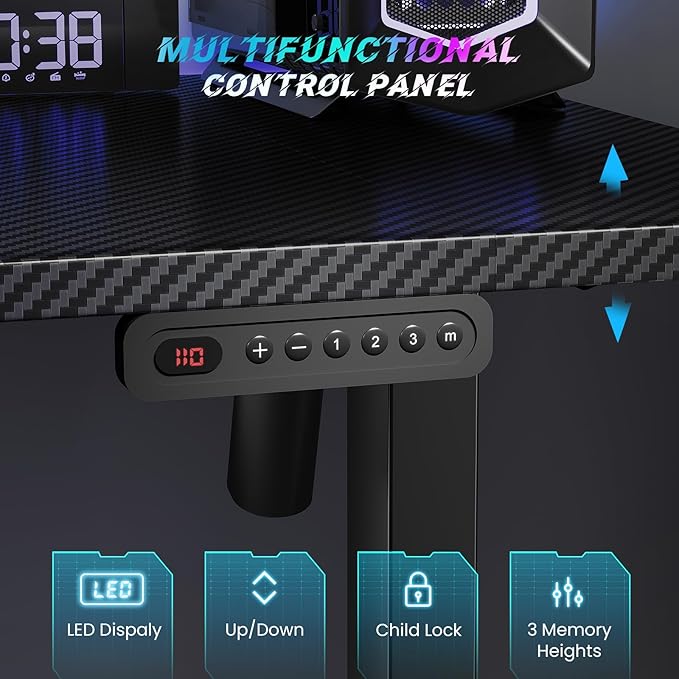 - Customized Sit Stand Desk : The reliable motor operates quietly (under 45 dB)and smoothly, all your things stay steady&secure in motion. The intuitive control panel allows you to preset 3 preferred heights, switch between sitting and standing positions has never been easier. Child lock for total peace of mind.