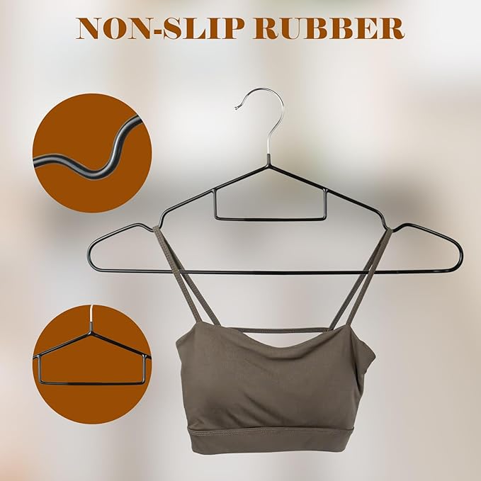 - No more sliding clothes:Our non-slip coating keeps even delicate fabrics like silk and satin securely in place. The grooved design holds straps, tank tops, and skirt hangers—no more fallen dresses or wrinkled blouses