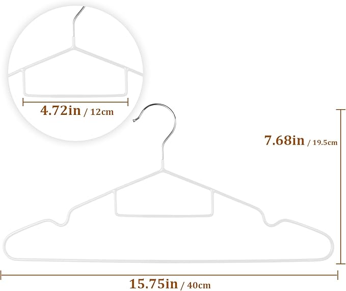 - Maximize closet space: With a slim, space-saving profile, these hangers help you fit 50% more clothes in your closet! The 15.7'W x 7.3'H design is ideal for shirts, pants, suits, and dresses, while the built-in tie bar neatly stores ties,scarves, belts, or even pants hangers space saving solutions