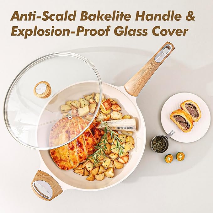 - Healthy Ceramic Cookware Set - Ceramic non-stick surface, non toxic, free of PFOA, PTFE, PFAS, PFOS, lead, cadmium and other toxic substances that can leach into food.