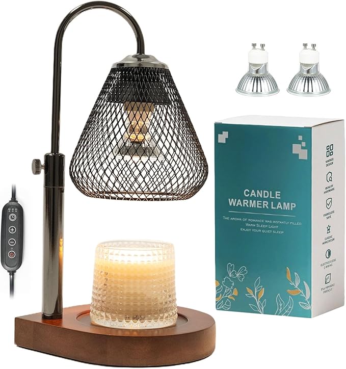 - Adjustable Height: Equipped with a 5.5-inch wooden base and a flexible height-adjustable lamp pole, this wax melt warmer easily accommodates candles of various sizes. Whether you’re using small votives or large jar candles, achieve optimal melting performance with simple height adjustments.