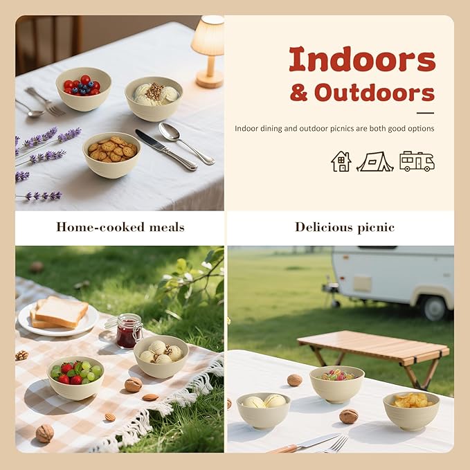 - ใ๐ฃ๐ฟ๐ฎ๐ฐ๐๐ถ๐ฐ๐ฎ๐น ๐๐ฎ๐ป๐ฑ๐ ๐๐ผ๐๐น๐ใ- Wrova Wheat Straw Dessert Bowls set of 6 - Hold 10 oz to the rim - Perfect for desserts, ice cream, fruits, meal prep, yogurt, and dipping sauces - Can be easily held with one hand - Ideal size and texture for a great touch and feel.