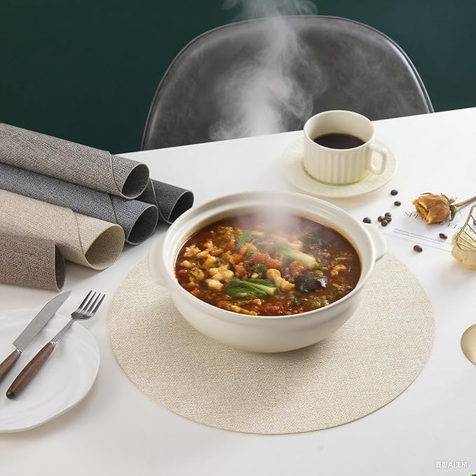 - Leather Placemats: Crafted from supple faux leather, our round placemats offer excellent flexibility, scratch resistance, and shape retention. They withstand rolling and daily utensil contact effortlessly. Both sides are ready for use.