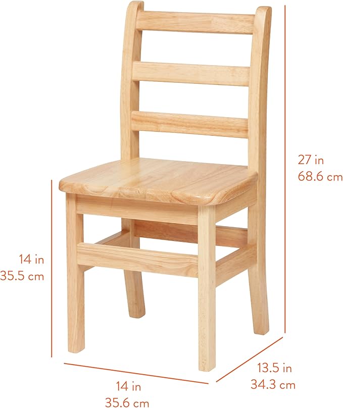 - Kids Chairs: 2-pack of wooden ladderback chairs designed for kids’ activities, ideal for a playroom, bedroom, early education classroom, or small-space learning area