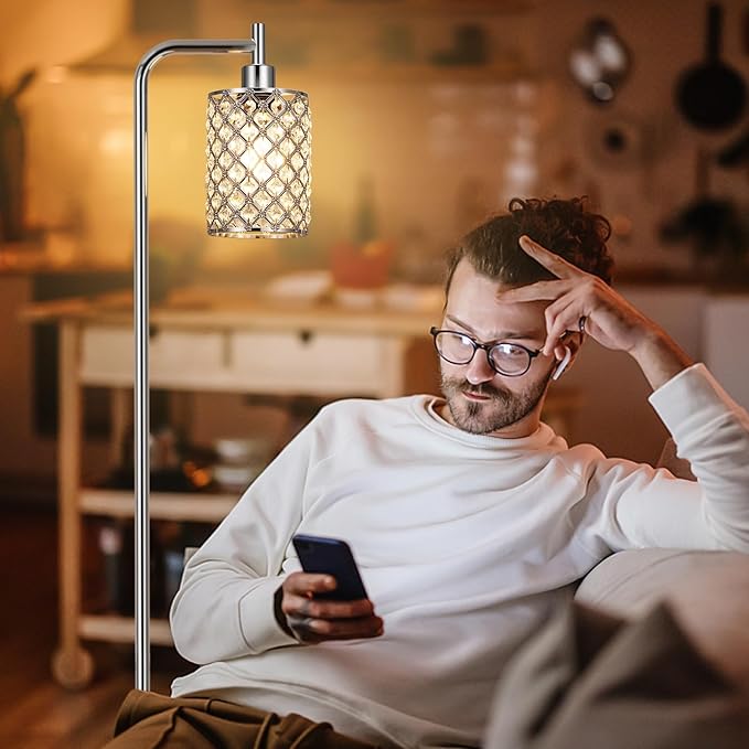 - 【Elegant Crystal Floor Lamp】 - This floor lamp features a slender silver tubular metal lamp post, paired with a crystal lampshade, making the floor lamp look stylish and exquisite. Standing lamp fits perfectly in your living room, bedroom, corner or office and takes up very little room and has a classy, retro look to it. Floor lamps for living room bright lighting both blends in and provides unassuming accent to the space.