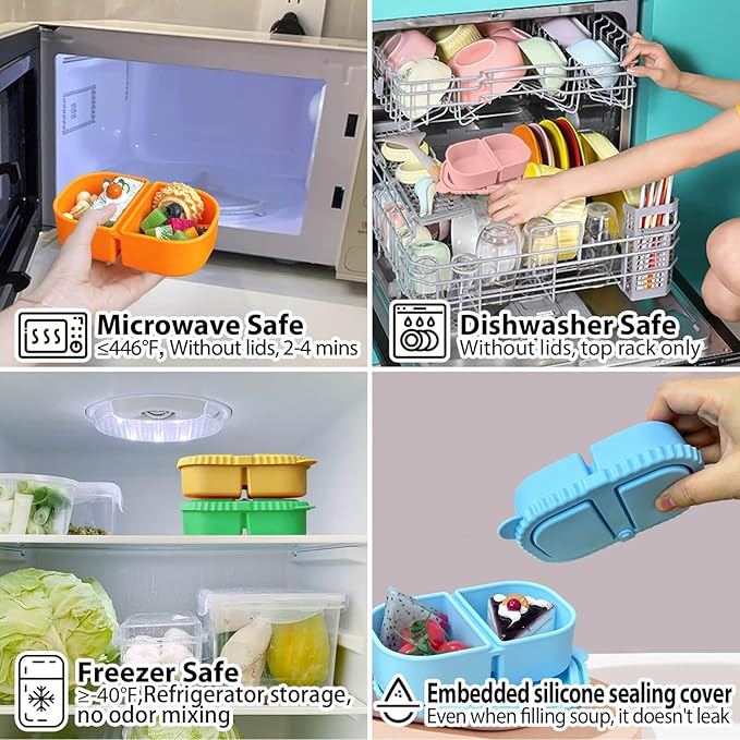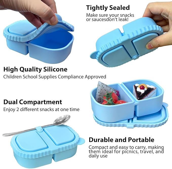 - Perfect for Travel, Picnics, and Office Use - The VPASION silicone reuseable snack box containers are designed for a wide range of uses, from snacks to sauces, fruits, or even small meal prep portions. These mini snack containers are compact and easy to carry, making them ideal for picnics, travel, and daily use. Whether you're enjoying a meal at the office or on a weekend getaway, these containers ensure your food is always fresh and ready to go