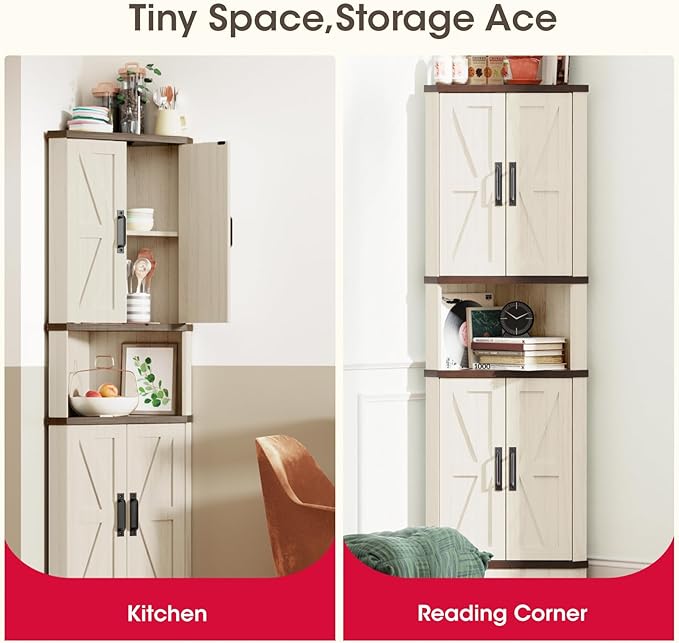 68.5" Tall Farmhouse Corner Cabinet with 4 Doors and 5 Storage Shelves, Farmhouse Storage Cabinet with Barn Door Design, Home Space Saver for Living Room, Kitchen