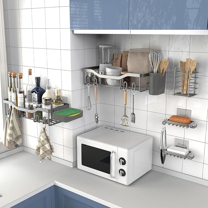- Ultra Size Large Capacity Shower Caddies 7-Pack with 24 Hooks: Each extra-large shower shelf comes with 8 durable hooks, it's perfect for storing bathroom essentials, wash supplies, cooking utensils, seasonings, hats. Maximize your space with these roomy adhesive shelves, perfect for enhancing your toilet, bathroom, kitchen, RV, laundry space or tool room, no drilling needed. Consider this bathroom organizers and storage set as a thoughtful gift for family and friends