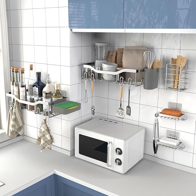 - Ultra Size Large Capacity Shower Caddies 7-Pack with 24 Hooks: Each extra-large shower shelf comes with 8 durable hooks, it's perfect for storing bathroom essentials, wash supplies, cooking utensils, seasonings, hats. Maximize your space with these roomy adhesive shelves, perfect for enhancing your toilet, bathroom, kitchen, RV, laundry space or tool room, no drilling needed. Consider this bathroom organizers and storage set as a thoughtful gift for family and friends