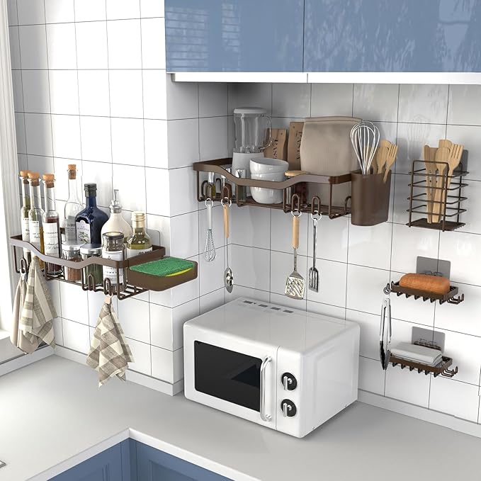 - Ultra Size Large Capacity Shower Caddies 7-Pack with 24 Hooks: Each extra-large shower shelf comes with 8 durable hooks, it's perfect for storing bathroom essentials, wash supplies, cooking utensils, seasonings, hats. Maximize your space with these roomy adhesive shelves, perfect for enhancing your toilet, bathroom, kitchen, RV, laundry space or tool room, no drilling needed. Consider this bathroom organizers and storage set as a thoughtful gift for family and friends