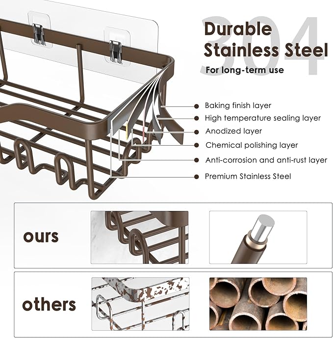 - Durable Rust-Resistant Stainless Steel: Expertly crafted from top-grade 304 stainless steel, with powder-coated process, bathroom shower shelves are tough, durable, stable, rustproof and scratch-proof. NESOMI shower rack rustproof powder-coated and solid frame wire are significantly thicker, ensuring long-lasting use. It can withstand humid conditions for up to 8 years and is backed by a 8-year warranty. Hollow design ensures ventilation and drainage, easy to keep clean