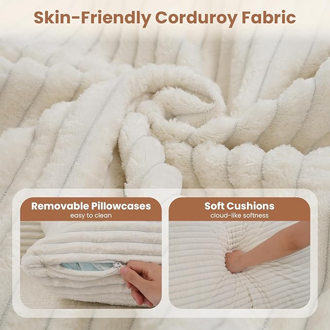 - Premium comfort & pet-friendly fabric: Sink into cloud-like comfort with high-resilience foam and velvety-soft brushed corduroy couch fabric—breathable, anti-pilling, and gentle on skin. The removable cushion covers are machine-washable, making cleanup a breeze (pet hair, begone!). Durable yet indulgent, it’s designed to cradle you after long days.