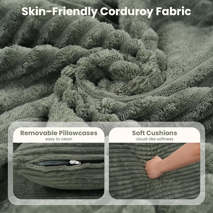 - Premium comfort & pet-friendly fabric: Sink into cloud-like comfort with high-resilience foam and velvety-soft brushed corduroy couch fabric—breathable, anti-pilling, and gentle on skin. The removable cushion covers are machine-washable, making cleanup a breeze (pet hair, begone!). Durable yet indulgent, it’s designed to cradle you after long days.