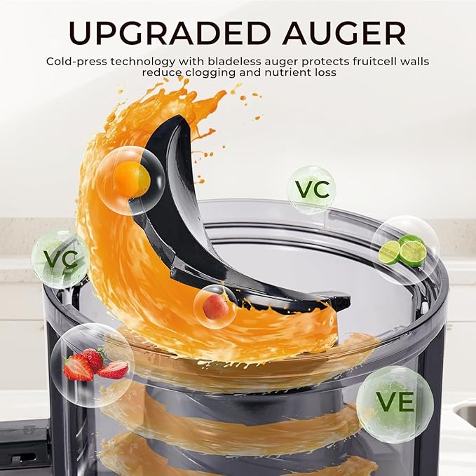 Masticating Juicer with Powerful 350W AC Motor, 5.4" Wide Feed Chute, Cold Press Slow Juice Extractor for Whole Fruits & Vegetables, High Juice Yield, AC-Black