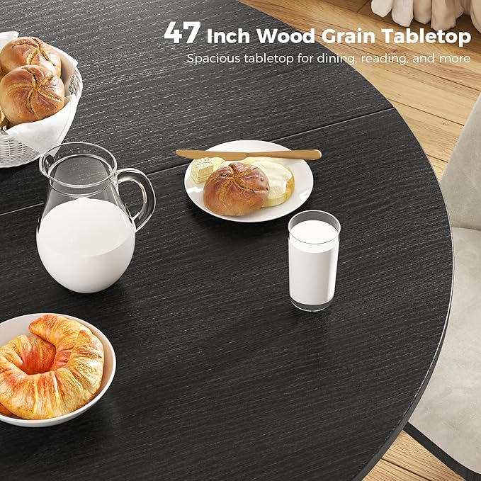 - 【Compact & Functional】This 47" round dining table comfortably has 4-6 seats, making it an ideal choice for smaller spaces. Its compact design maximizes seating while maintaining a stylish aesthetic, perfect for intimate gatherings