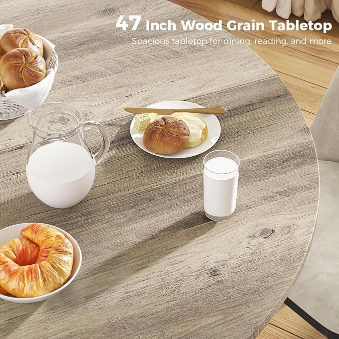 - 【Compact & Functional】This 47" round dining table comfortably has 4-6 seats, making it an ideal choice for smaller spaces. Its compact design maximizes seating while maintaining a stylish aesthetic, perfect for intimate gatherings