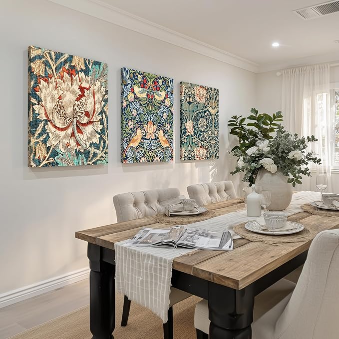 - A Thoughtful Gift for Art and Nature Lovers: Perfect for housewarmings, birthdays, or weddings, this floral canvas trio is an elegant gift for anyone who appreciates nature-inspired art, William Morris design, or antique botanical prints. Securely packaged for safe arrival, it brings sophistication and serenity to any home, celebrating artistry, history, and floral beauty in one cohesive set.